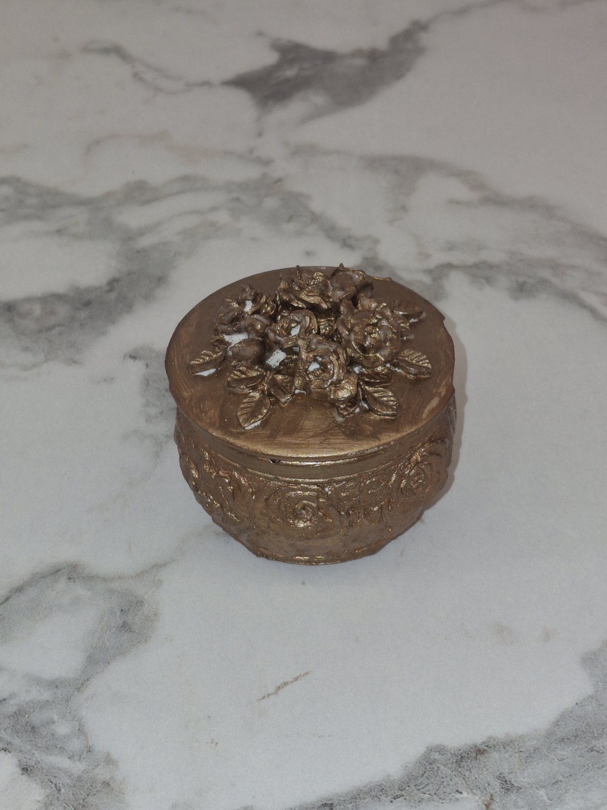 Χειροποίητο ανάγλυφο κουτί με καπάκι, διακοσμημένο με εντυπωσιακά λουλούδια και λεπτομέρειες σε ρομαντικό ύφος. Διατίθεται σε κομψές αποχρώσεις mint, σαμπανί, μπρονζέ και σάπιο μήλο, προσφέροντας ένα ιδιαίτερα φίνο αποτέλεσμα.