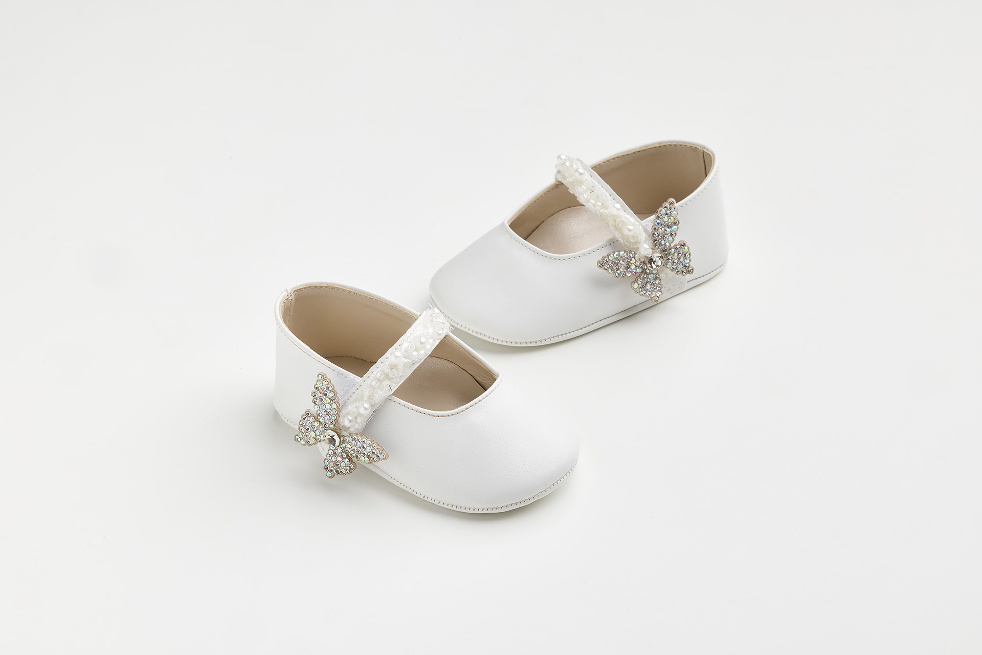 Μπαλαρίνα αγκαλιάς σε εκρού τεχνόδερμα με χάντρες, πέρλες και στρας πεταλούδα.