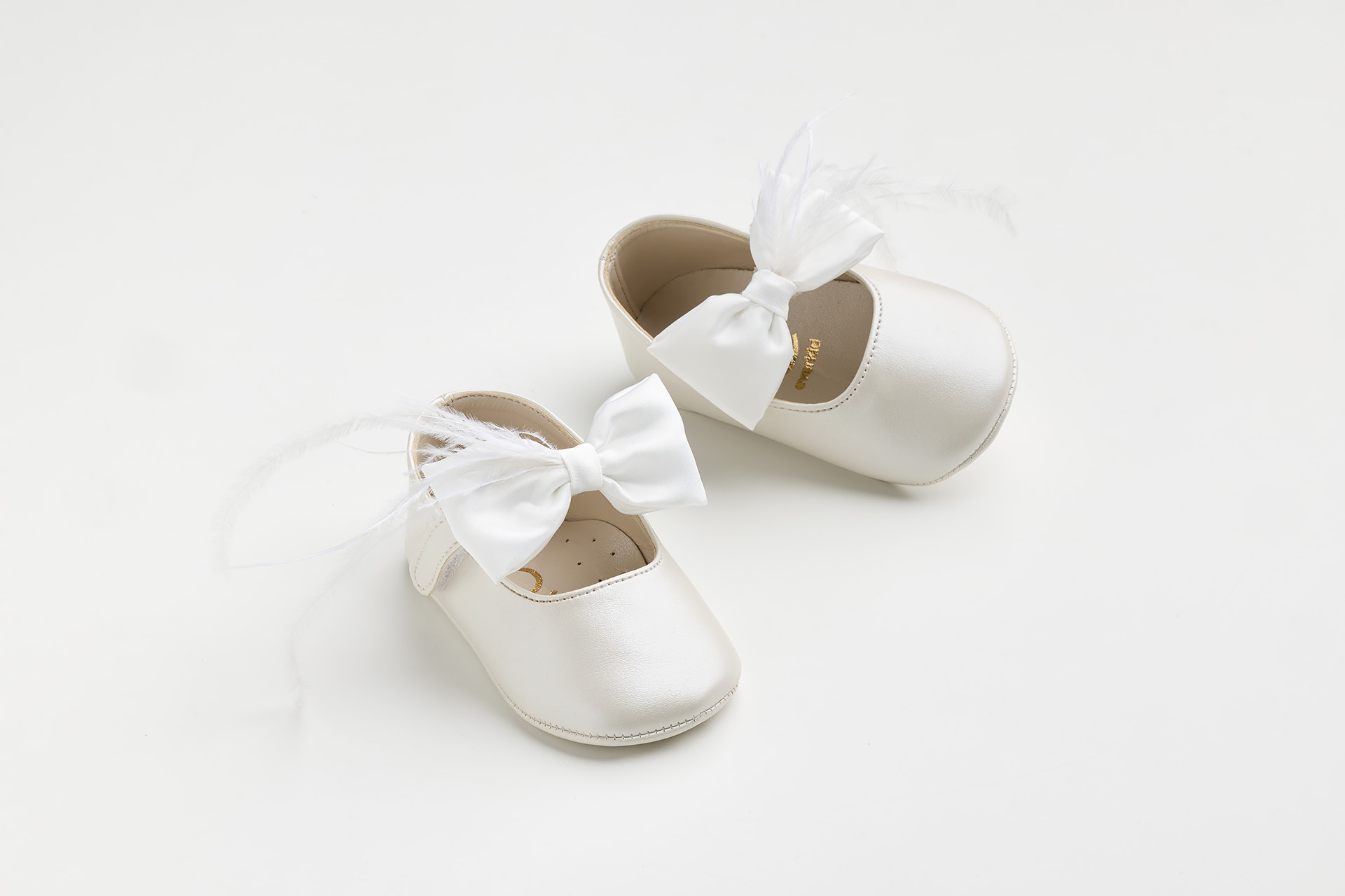Μπαλαρίνα αγκαλιάς σε εκρού τεχνόδερμα με χειροποίητο φιόγκο και φτερά.
