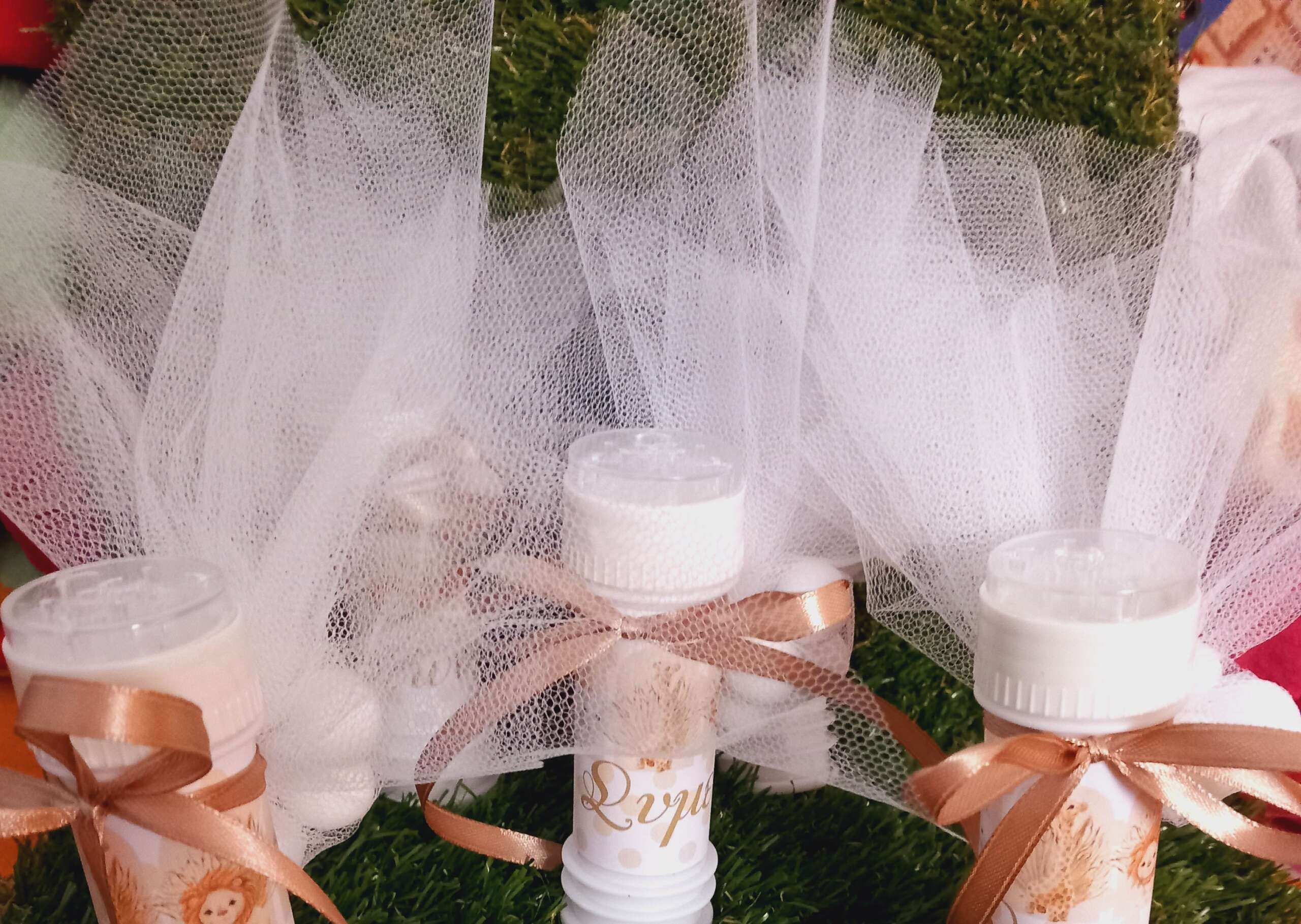 Μοναδική μπομπονιέρα βάπτισης  σαπουνόφουσκα με θεμα λιονταράκι safari σε γήινες αποχρώσεις μπεζ και χρυσού.