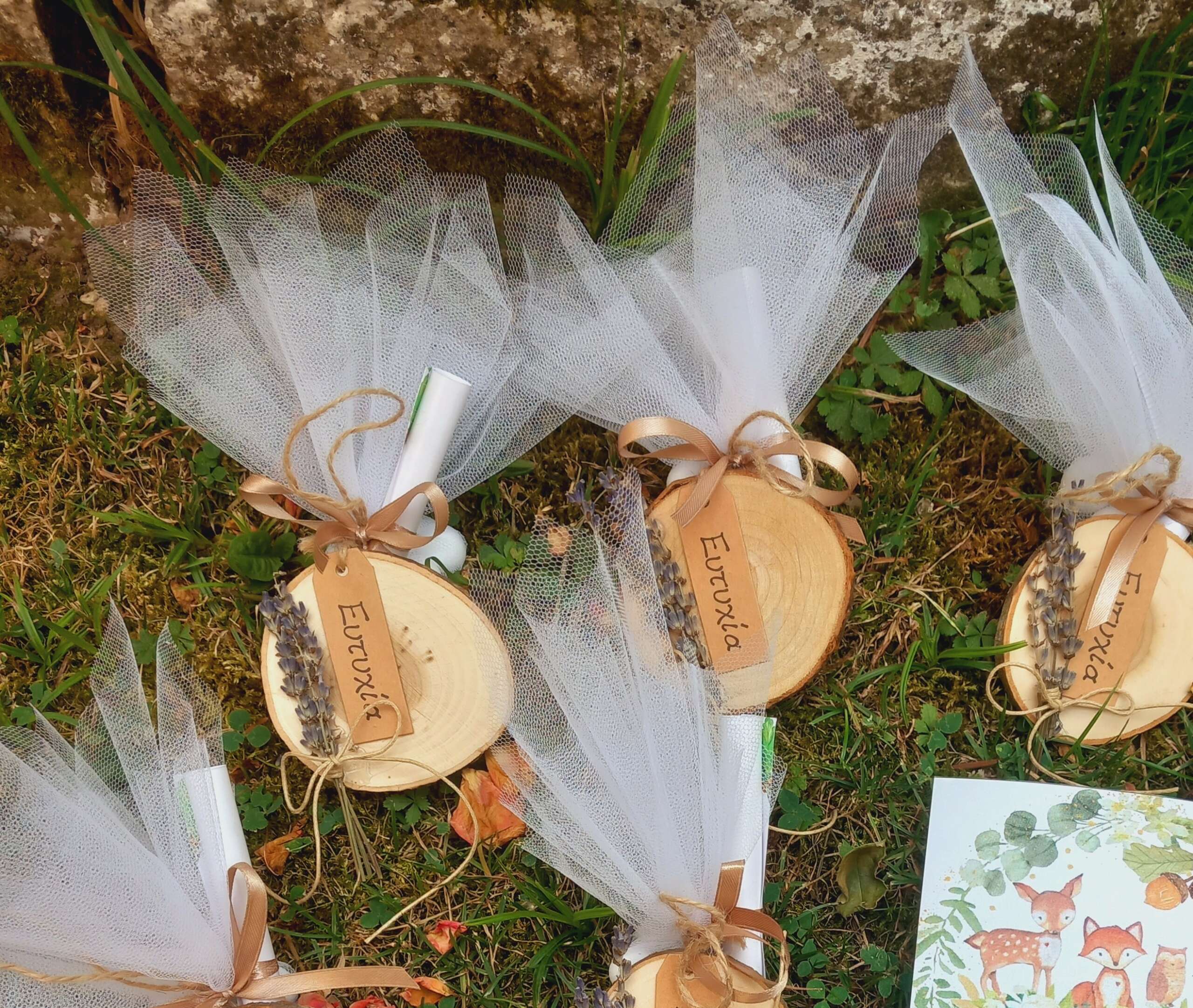 Η φυσική υφή του ξύλου σε συνδυασμό με το άρωμα της λεβάντας προσφέρει μία αίσθηση φρεσκάδας και αυθεντικότητας, ιδανική για γάμο, βάπτιση ή οποιαδήποτε ιδιαίτερη στιγμή.