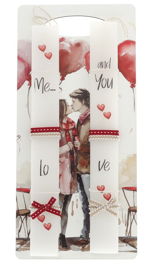 Αρωματικές χειροποίητες πασχαλινές λαμπάδες με θέμα ερωτευμένο ζευγάρι σε ξύλινη εκτυπωμένη πλάτη .