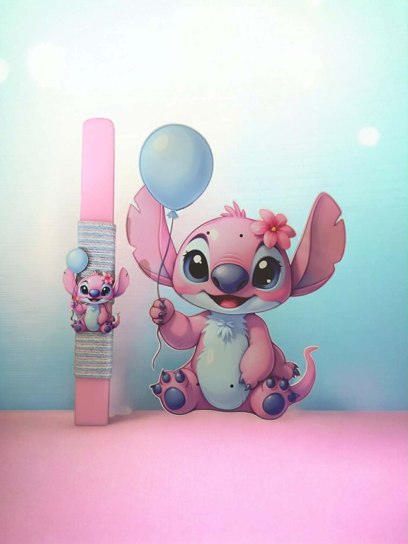 Πασχαλινή Λαμπάδα με ροζ Stitch & μπαλόνι