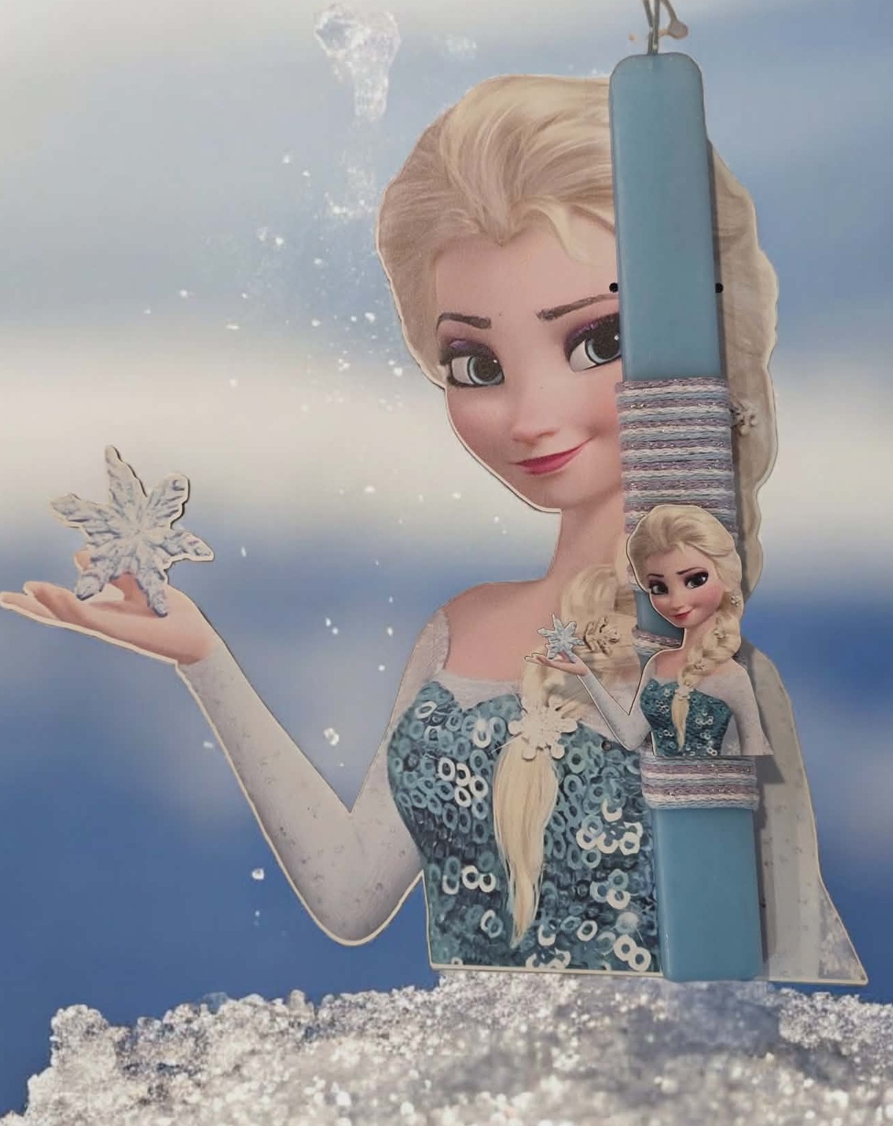 Σε γαλάζια απόχρωση, διακοσμημένη με αγαπημένη ηρωίδα που κρατά το χαρακτηριστικό χιονονιφάδα, αυτή η λαμπάδα αποπνέει χειμωνιάτικη λάμψη και παραμυθένιο χαρακτήρα. Οι ασημο-γαλάζιες λεπτομέρειες στο κορδόνι δένουν απόλυτα με το θέμα και χαρίζουν elegant αποτέλεσμα.