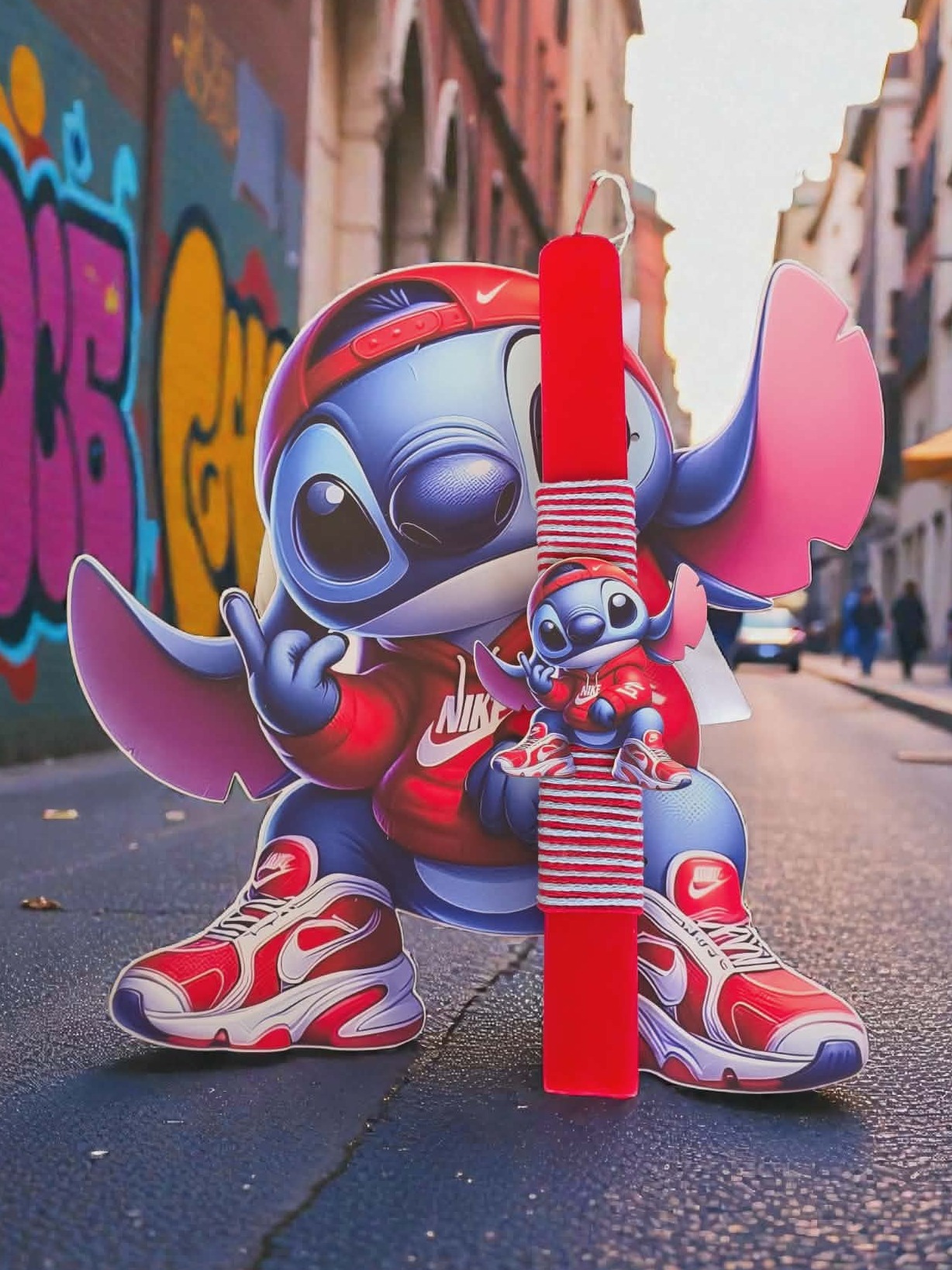 Μια ξεχωριστή πασχαλινή λαμπάδα με τον αγαπημένο Stitch σε μοντέρνο street ύφος.