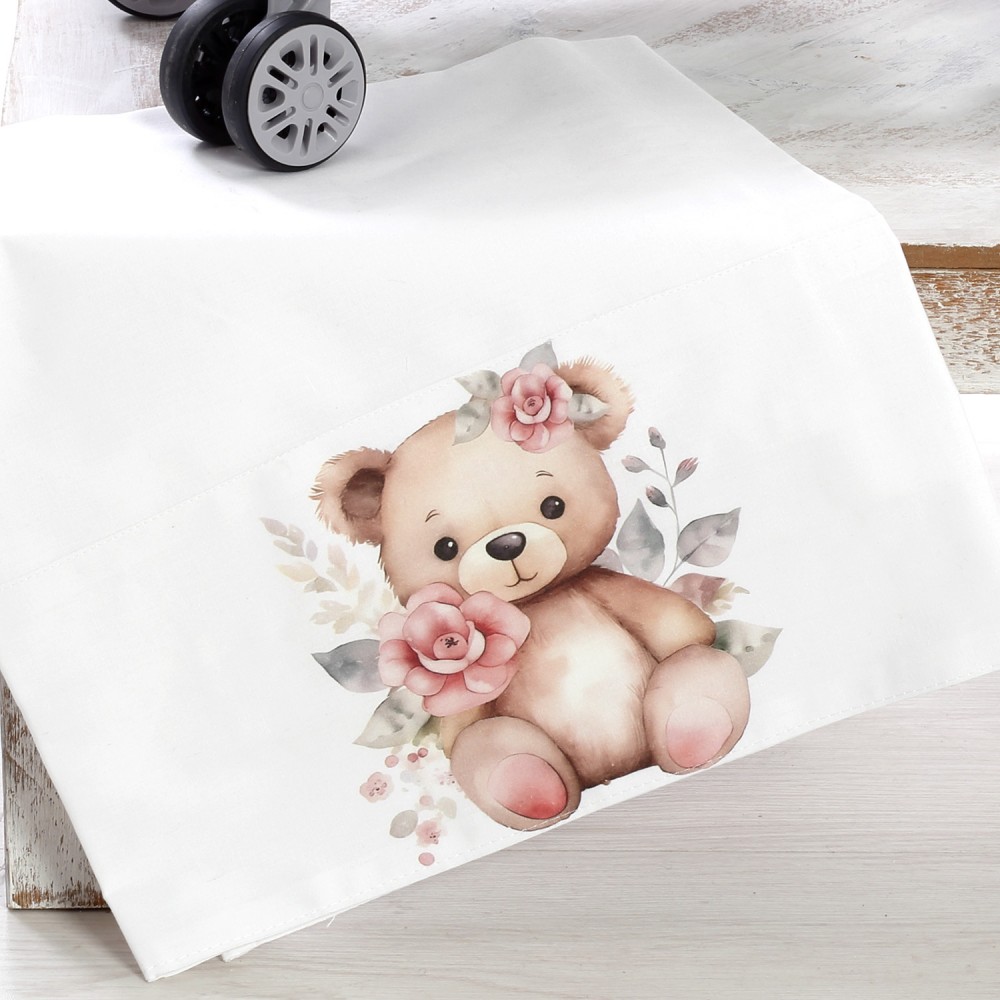 - Μεγάλη πετσέτα με UV εκτύπωση αρκουδάκι και λουλούδια