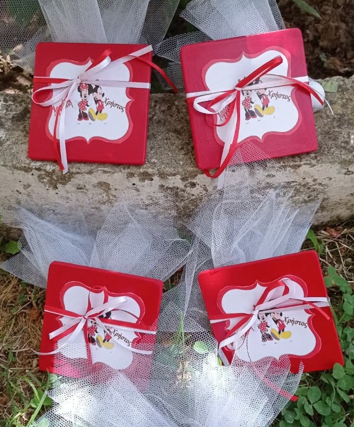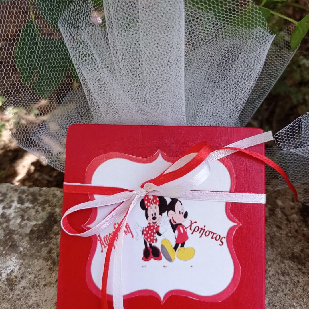 Χειροποίητη Μπομπονιέρα – Σουβέρ με Θέμα Minnie & Mickey