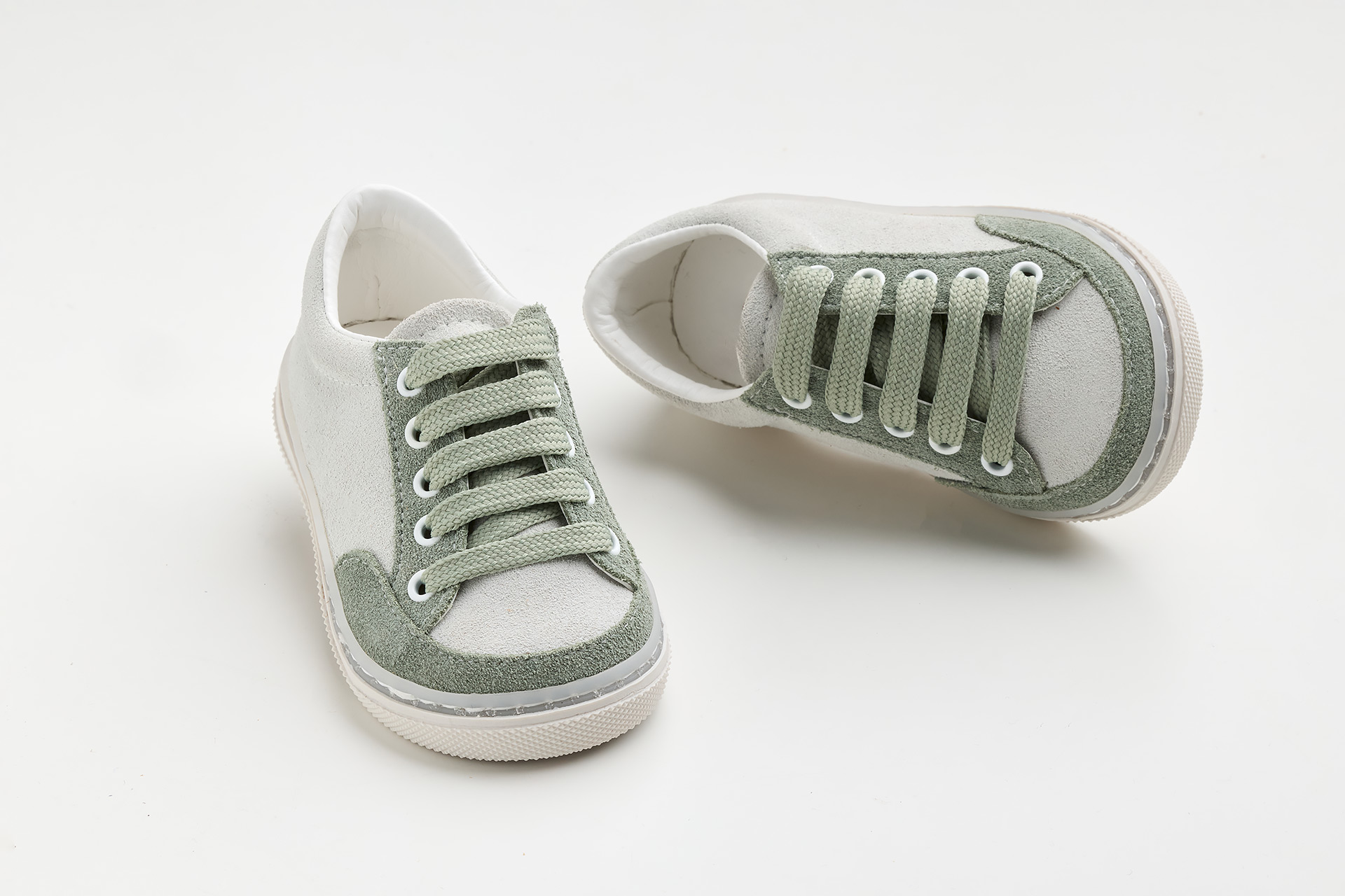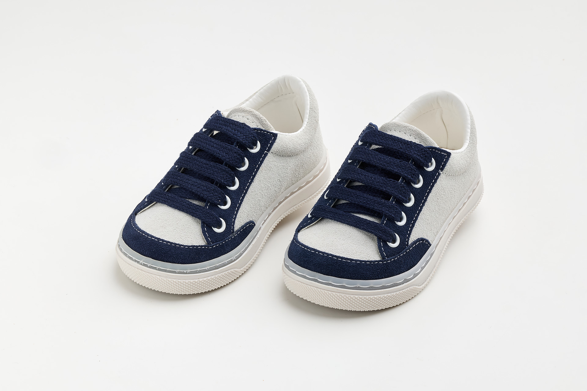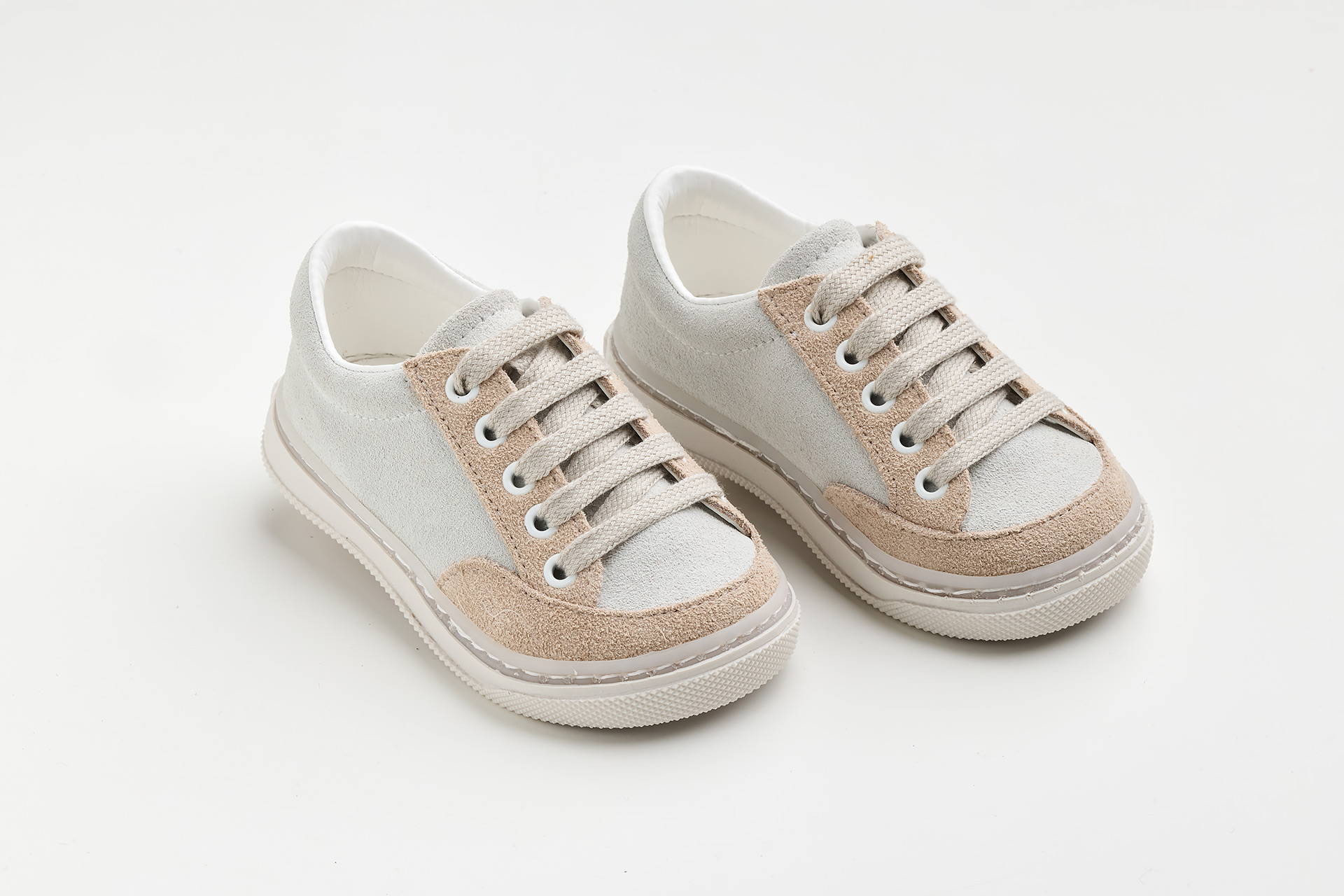 Παπουτσάκι περπατήματος σε λευκό και μπεζ καστόρ δέρμα.