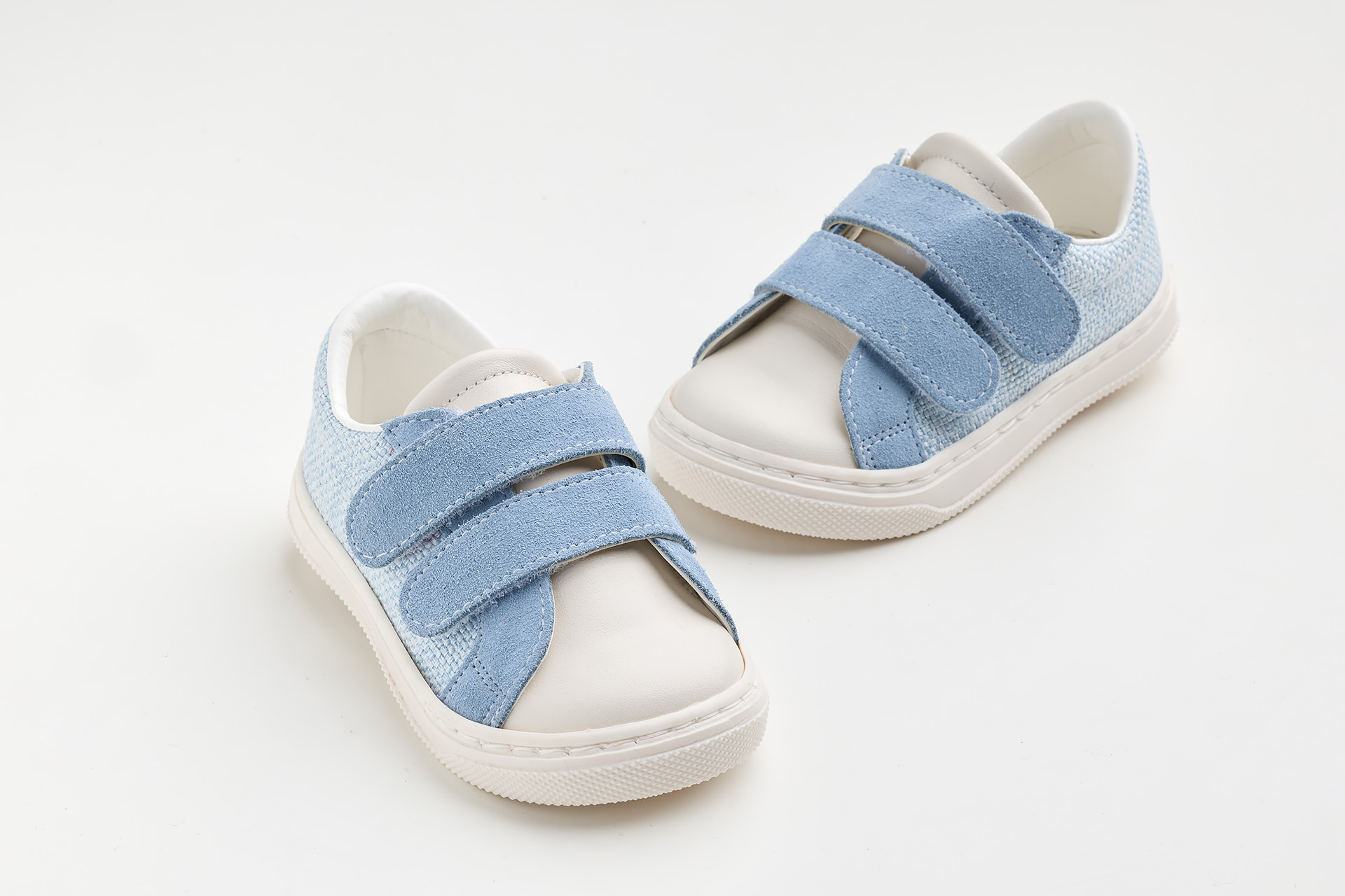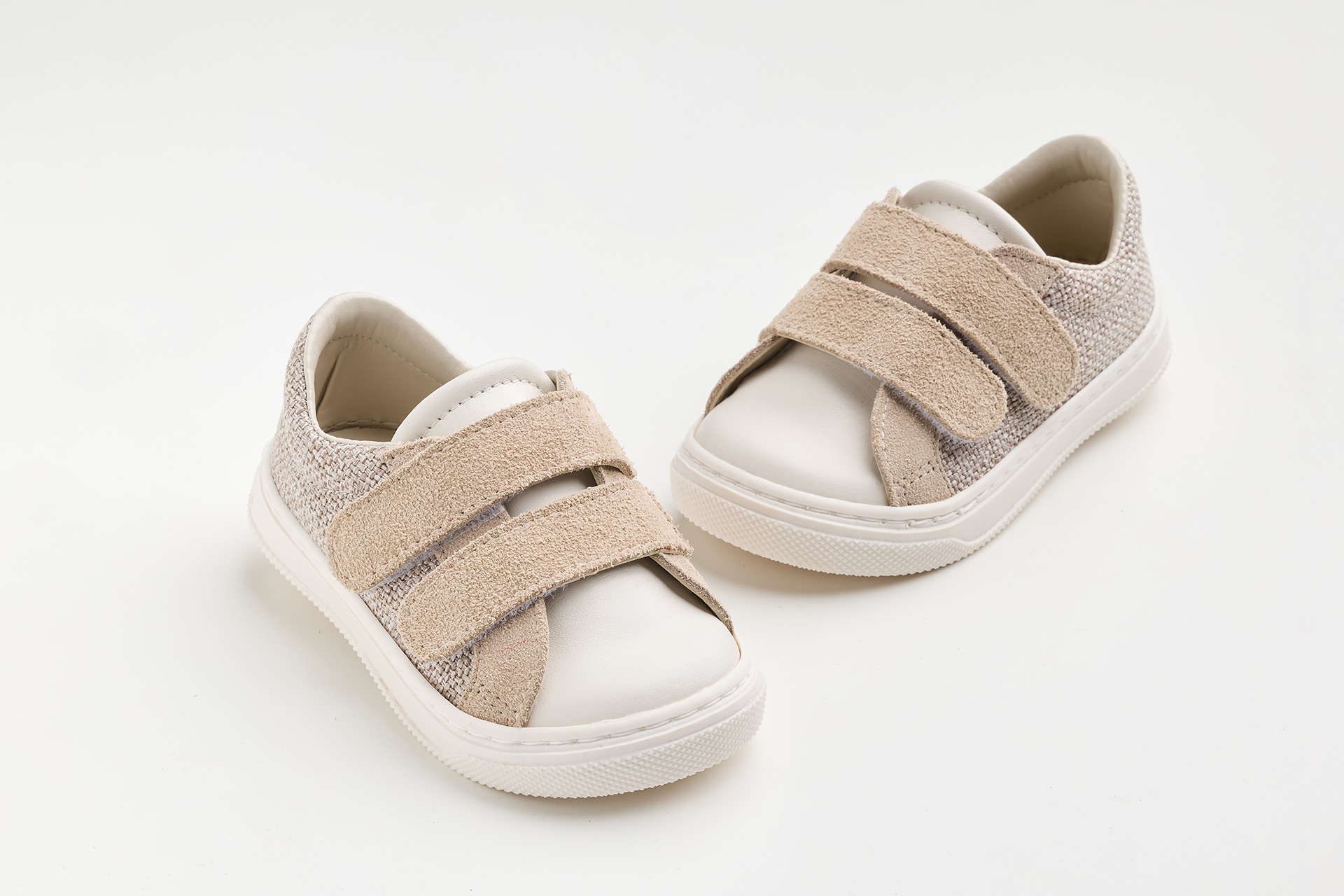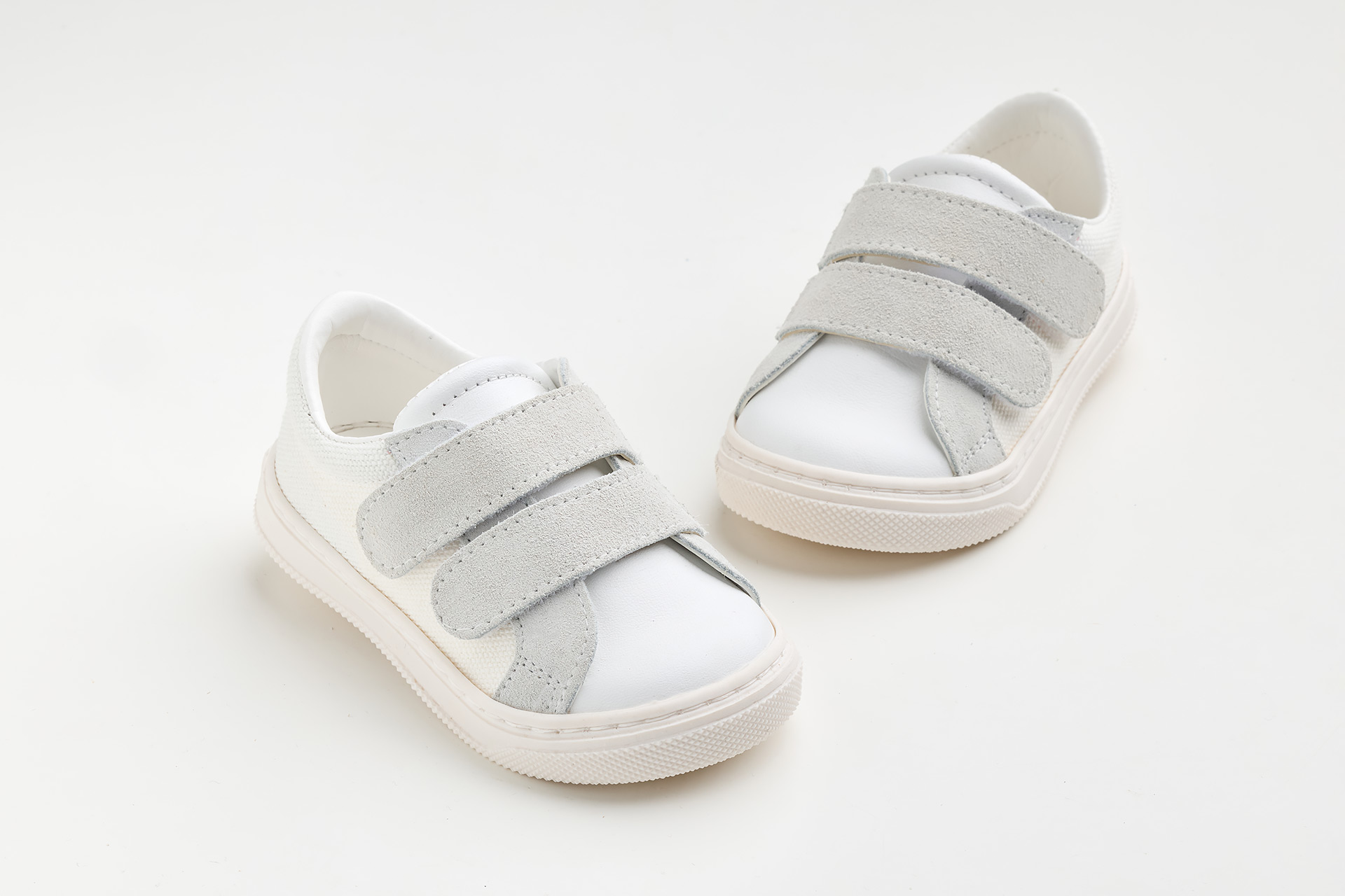 Παπουτσάκι περπατήματος σε λευκό ύφασμα, λευκό καστόρ και λείο δέρμα.