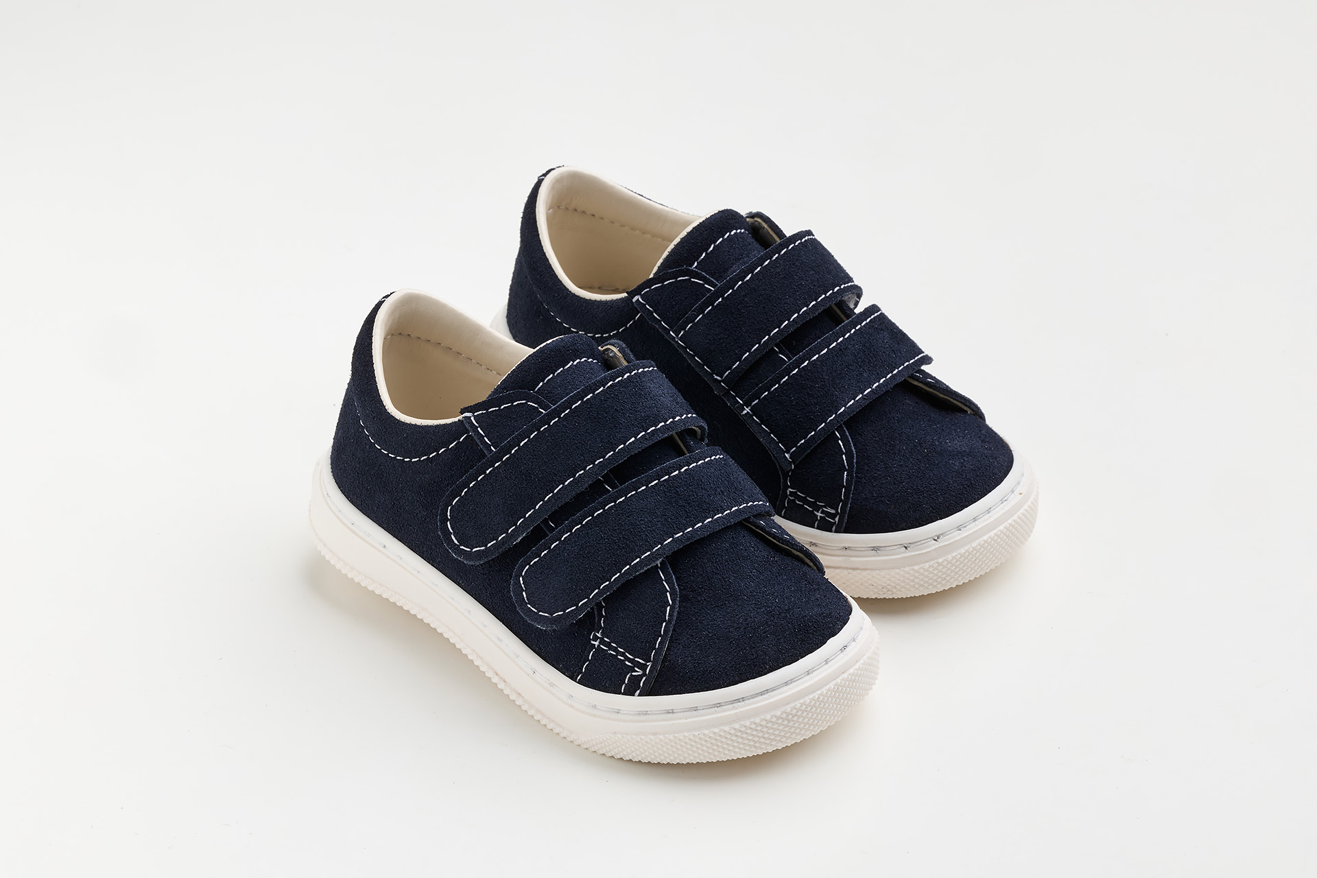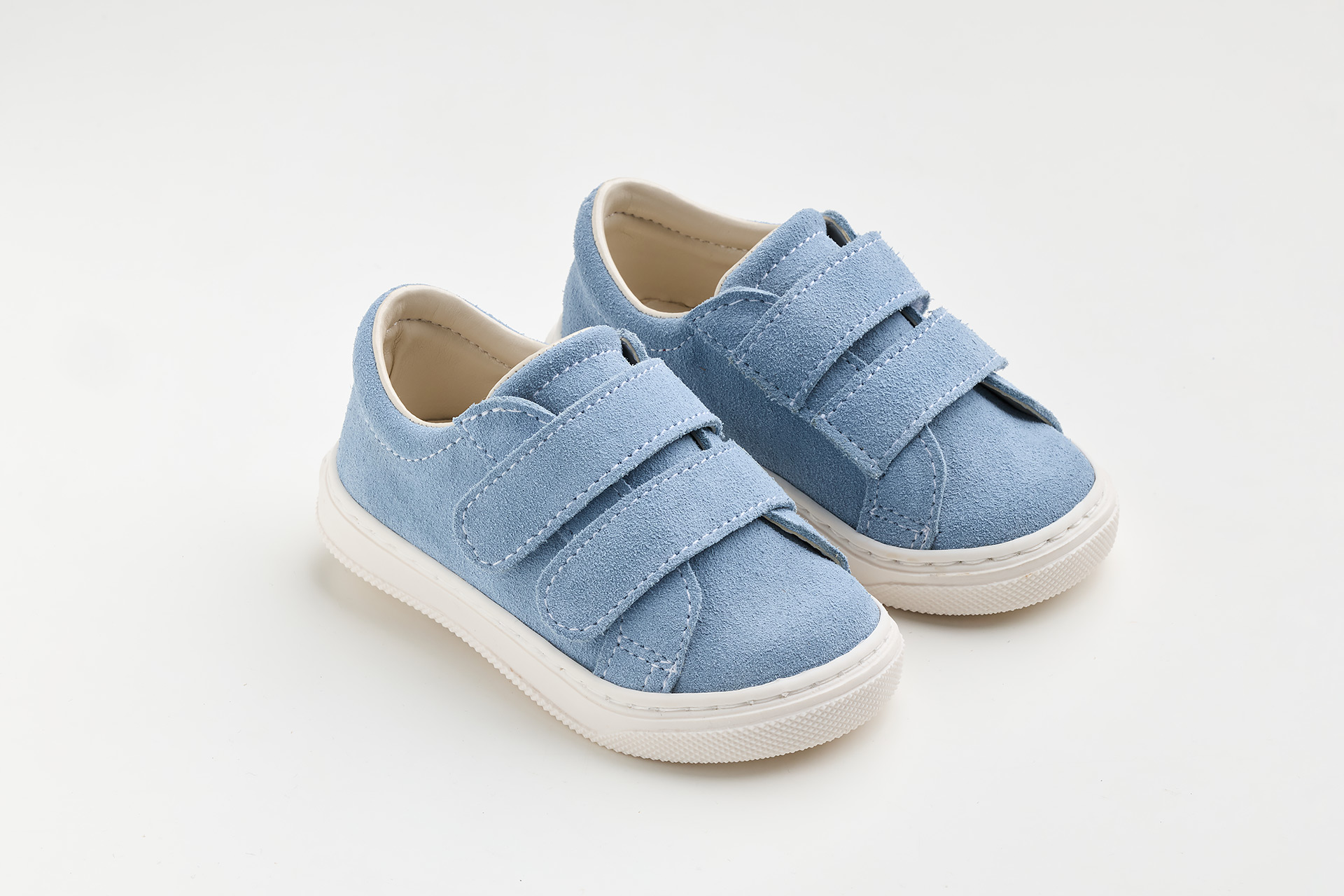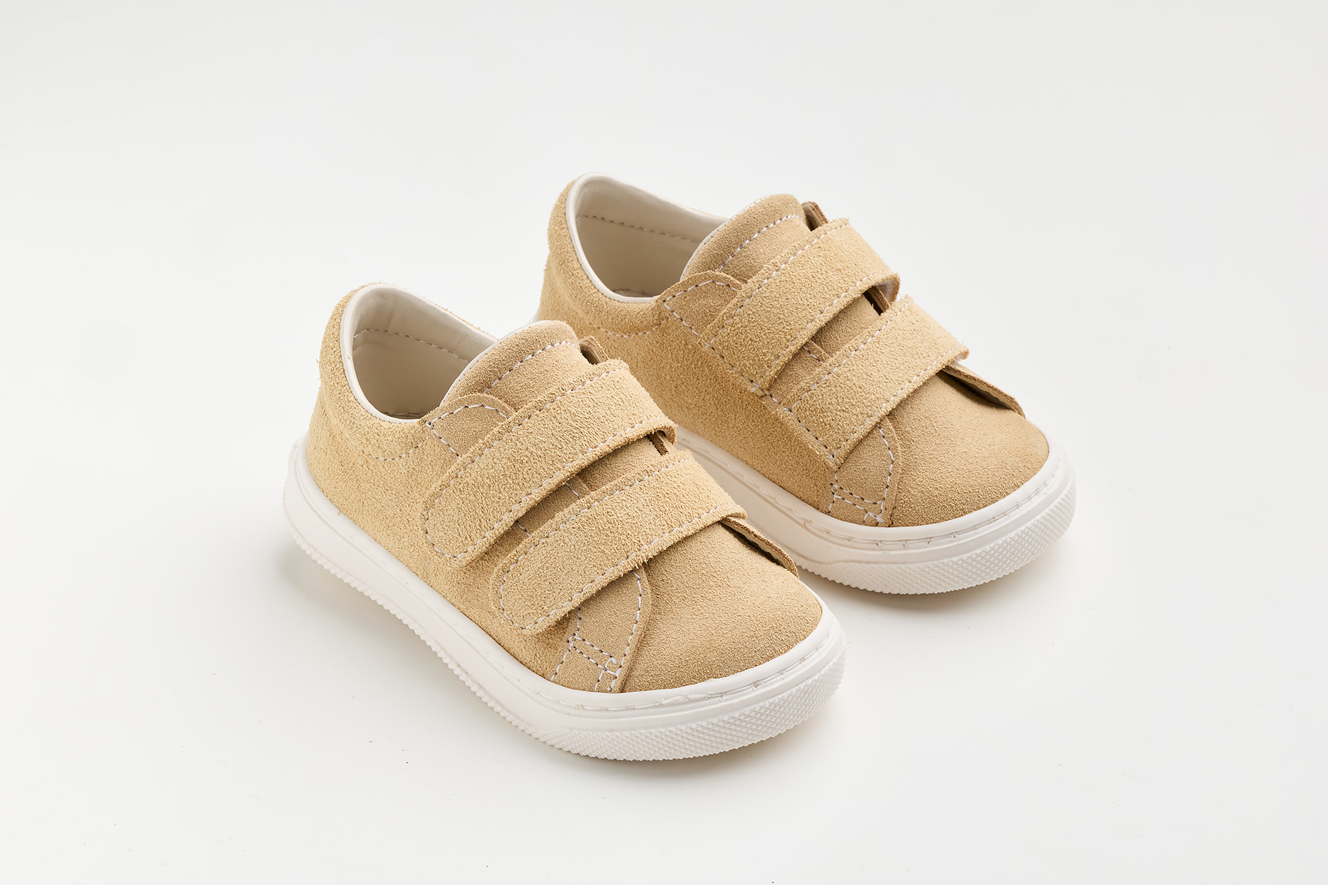 Παπουτσάκι περπατήματος σε λευκό ύφασμα, λευκό καστόρ και λείο δέρμα.