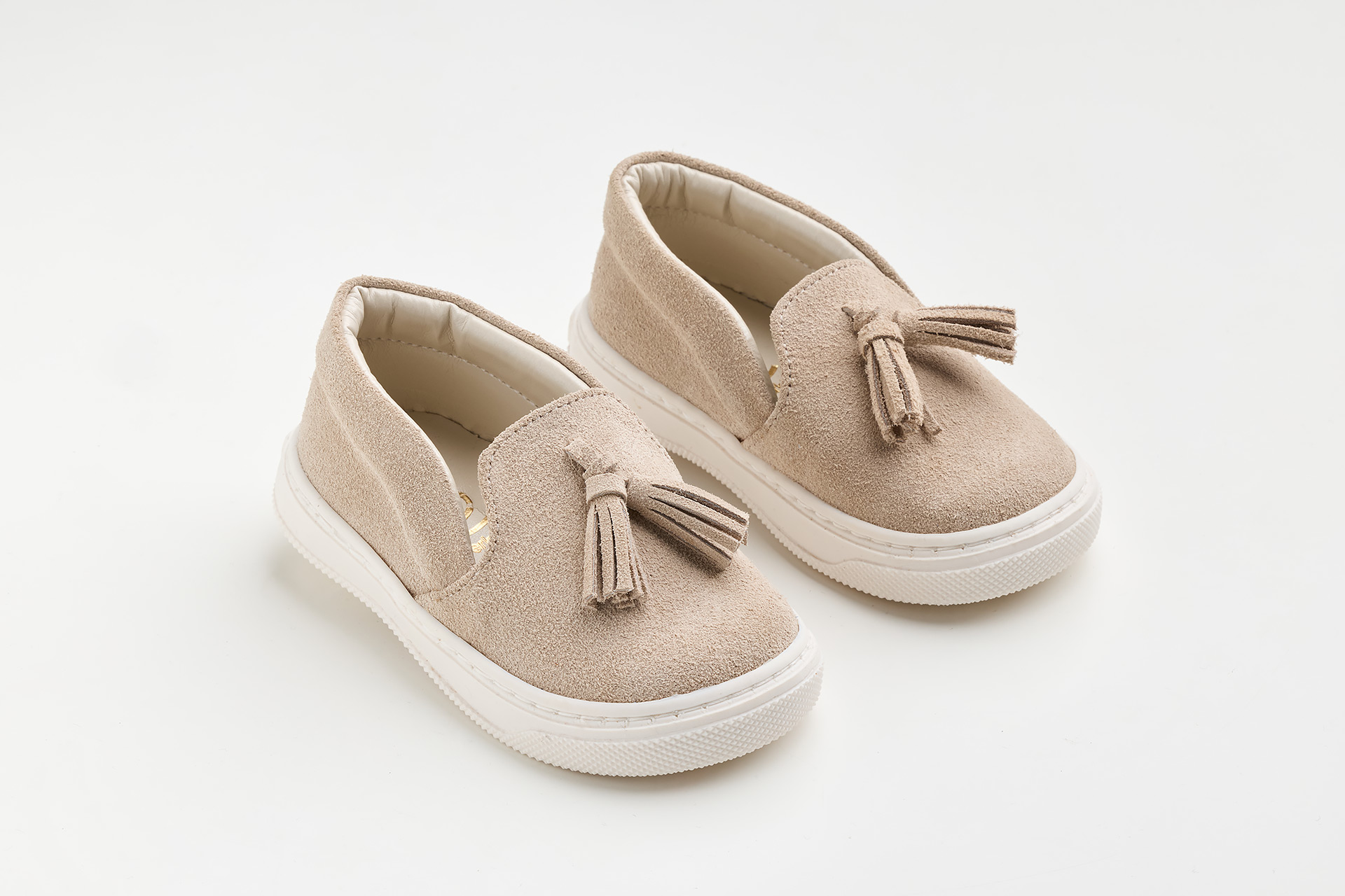 Slip on παπούτσι περπατήματος σε ταμπά καστόρ δέρμα και διακόσμηση με
