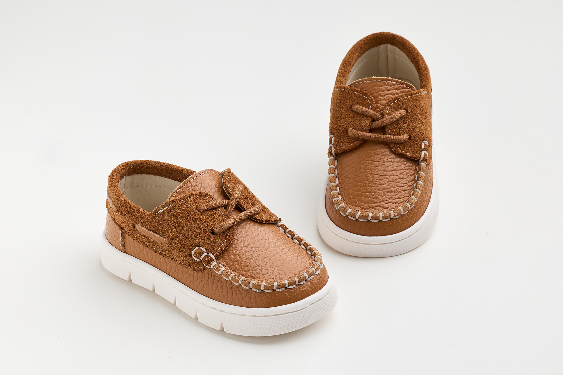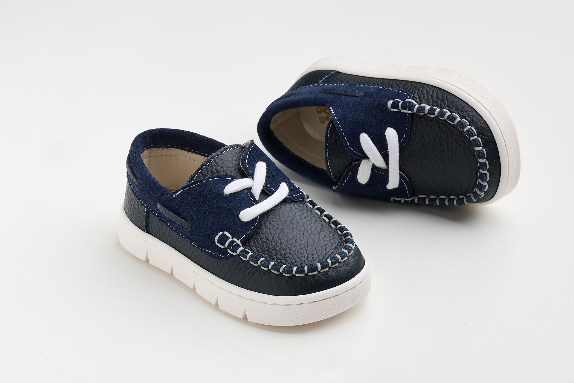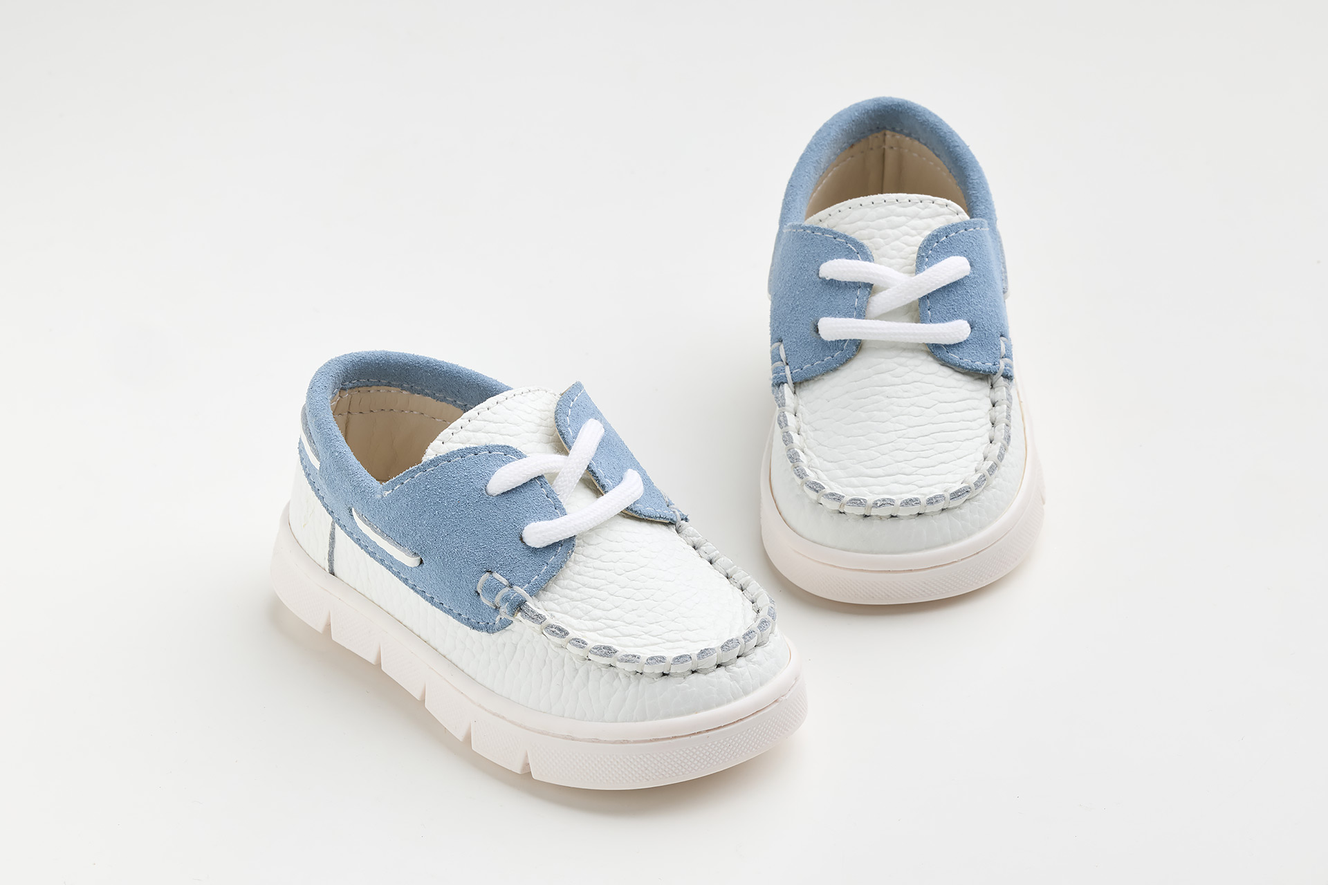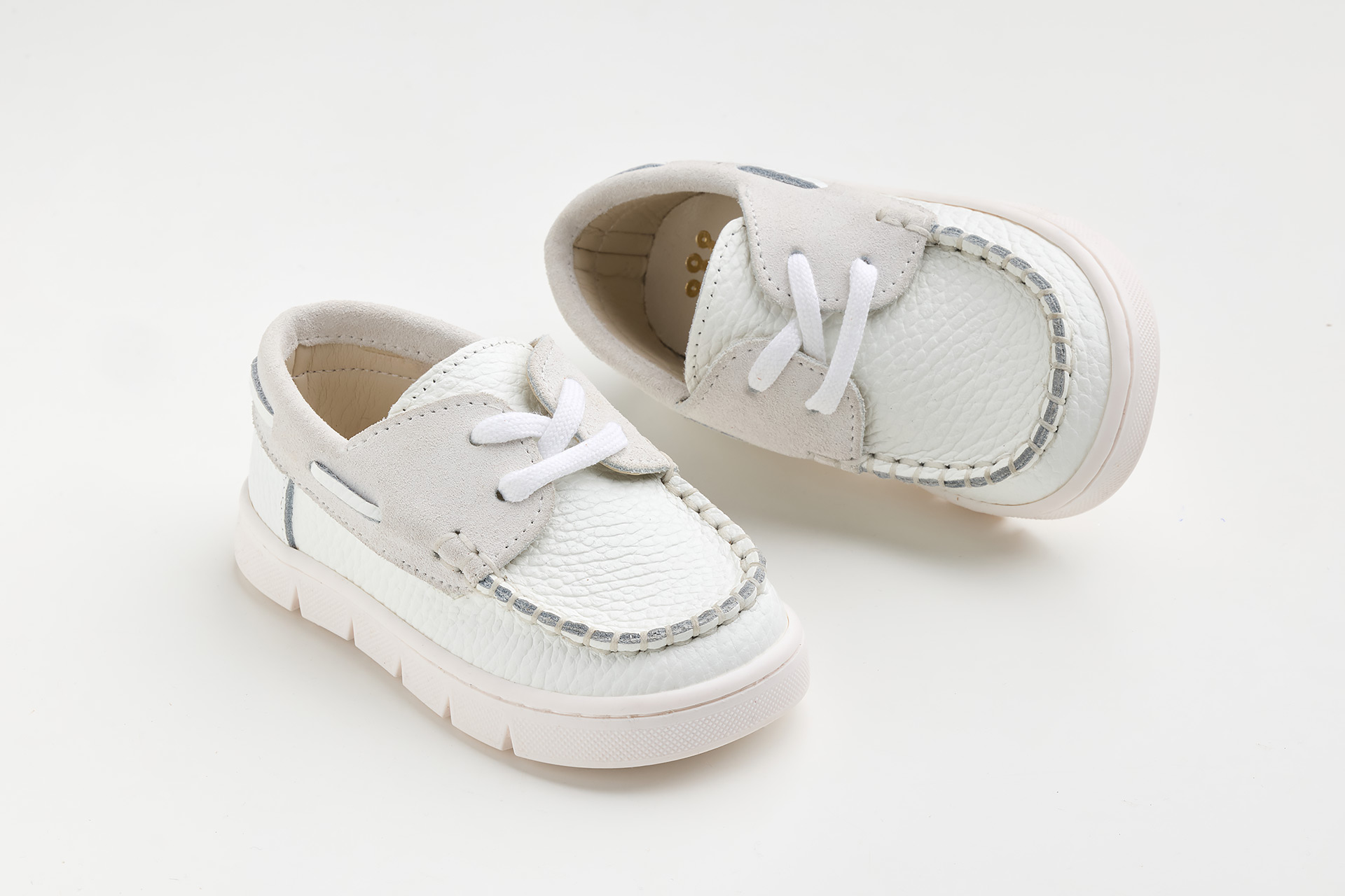 Παπουτσάκι boat περπατήματος σε λευκό δέρμα και λευκό καστόρ δέρμα.