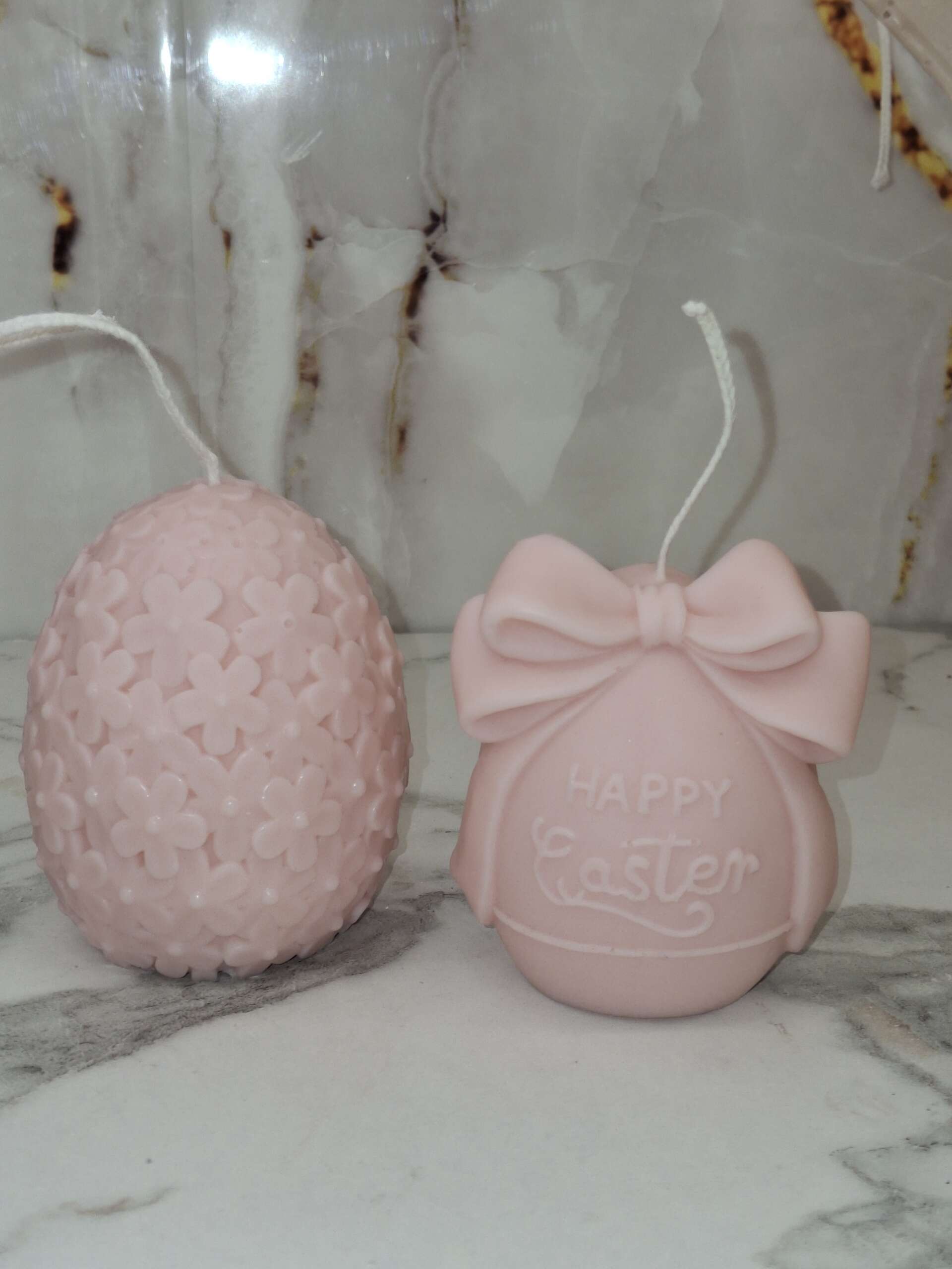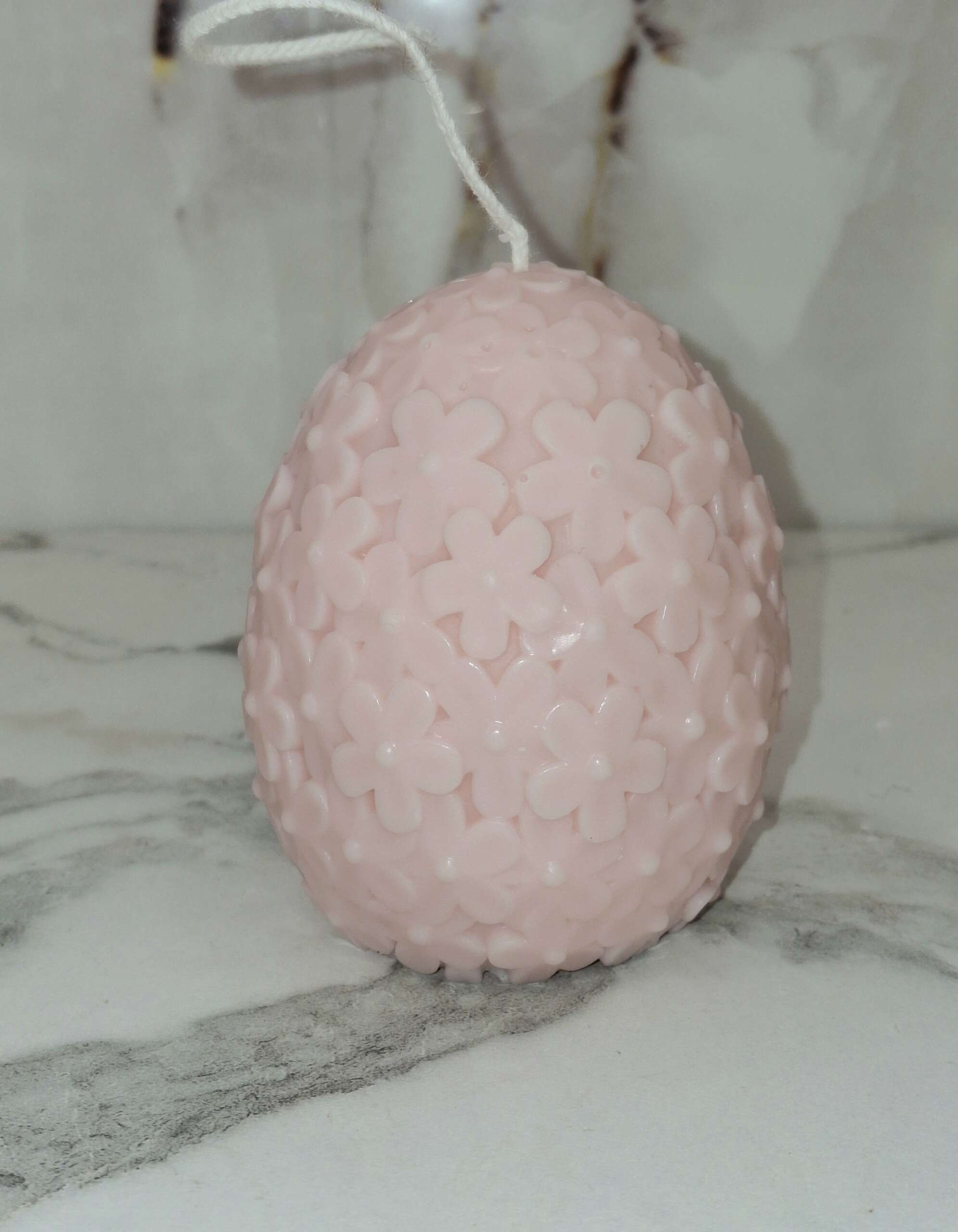 Ένα μοναδικό πασχαλινό κερί σε σχήμα αυγού, σε απαλή ροζ απόχρωση, διακοσμημένο με ανάγλυφα λουλούδια που δημιουργούν ένα εντυπωσιακό και ρομαντικό αποτέλεσμα.