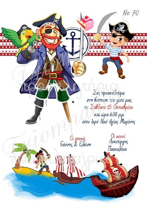 Ένα εντυπωσιακό και χαρούμενο προσκλητήριο βάπτισης με πειρατικό θέμα, γεμάτο χρώμα, φαντασία και παιχνιδιάρικες λεπτομέρειες.