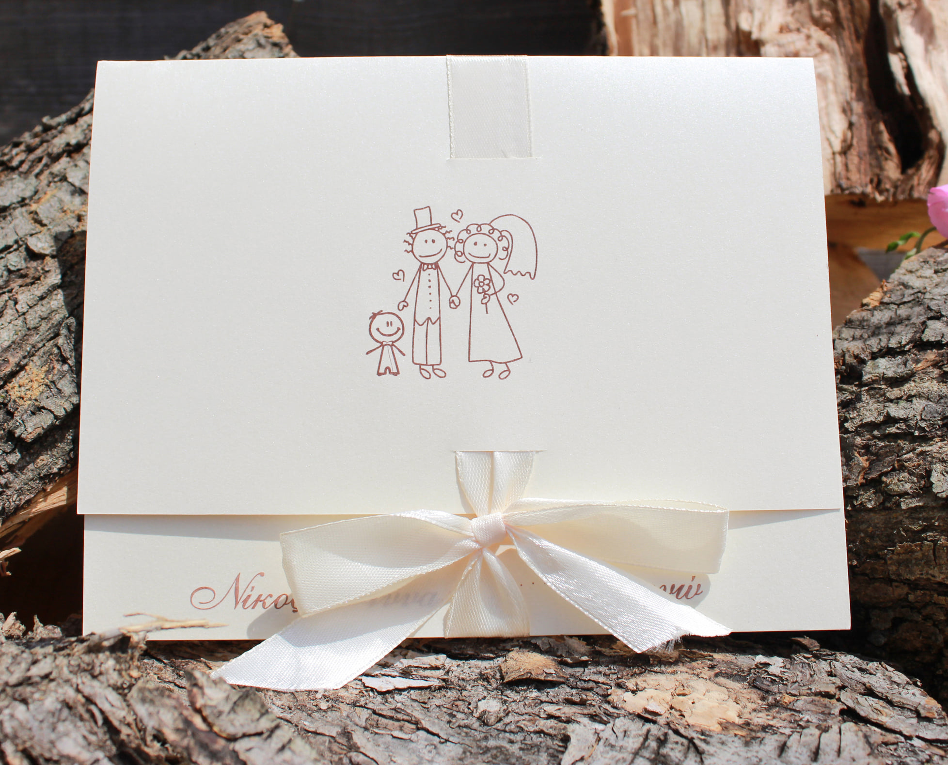 Τρυφερό και πρωτότυπο προσκλητήριο γάμου και βάπτισης με χειροποίητο σκίτσο οικογένειας, που αποτυπώνει με απλότητα και αγάπη τη χαρά της νέας κοινής ζωής.