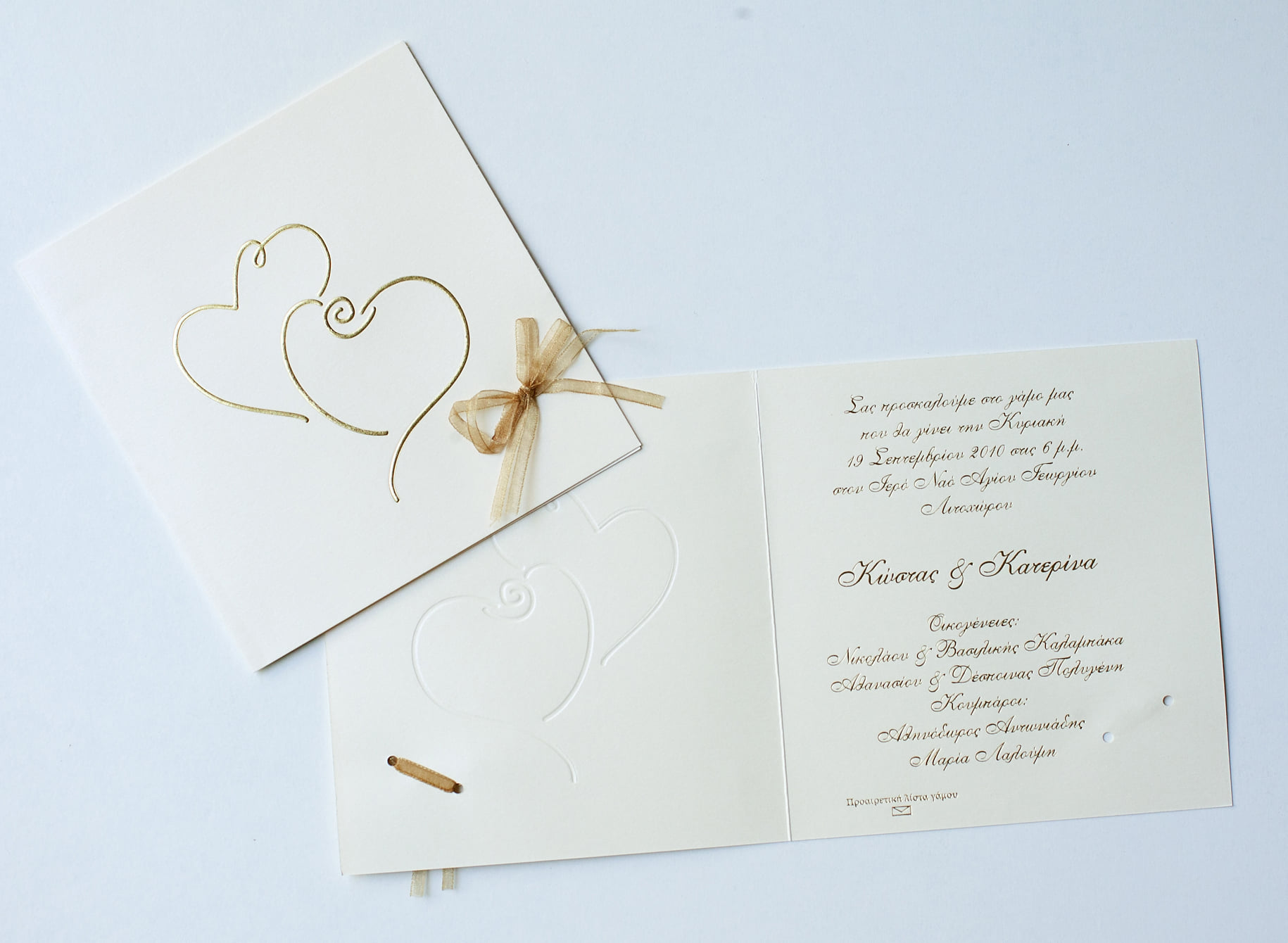 Προσκλητήριο Γάμου με Χρυσές Ανάγλυφες Καρδιές