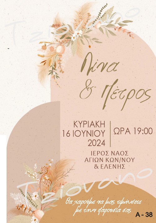 Ένα σύγχρονο προσκλητήριο γάμου με modern boho αισθητική και ζεστές γήινες αποχρώσεις. Τα γεωμετρικά σχήματα σε απαλούς nude και ροδακινί τόνους συνδυάζονται αρμονικά με τα φυτικά στοιχεία, δημιουργώντας ένα αποτέλεσμα ισορροπίας, φυσικής κομψότητας και ρομαντισμού.