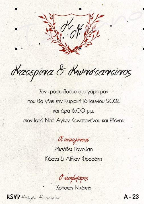 Ένα εκλεπτυσμένο προσκλητήριο γάμου με vintage αισθητική και ρομαντικές λεπτομέρειες. Το διακριτικό φόντο με υφή χαρτιού, σε συνδυασμό με το διακοσμητικό έμβλημα (crest) και τα μπορντό φυτικά στοιχεία, δημιουργεί ένα αποτέλεσμα διαχρονικής κομψότητας και αρχοντικού χαρακτήρα.