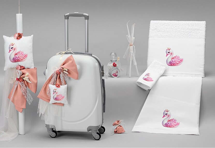 Σετ Βάπτισης Κύκνος Ροζ με Βαλίτσα Τρόλεϊ