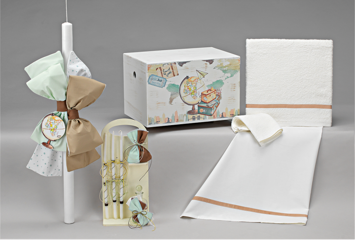 Ένα ξεχωριστό και ταξιδιάρικο σετ βάπτισης με θέμα τον κόσμο και τα ταξίδια, ιδανικό για μικρούς εξερευνητές! Σε αποχρώσεις μέντας, μπεζ και γήινων τόνων, το σετ αποπνέει κομψότητα και περιπέτεια.