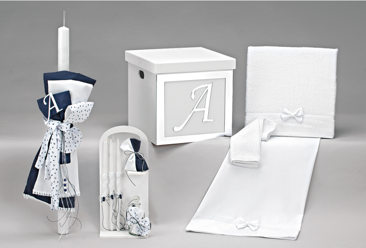 Ο συνδυασμός του λευκού με το navy δημιουργεί ένα κομψό και μοντέρνο αποτέλεσμα, ενώ το μονόγραμμα προσθέτει μια προσωποποιημένη πινελιά που κάνει το σετ μοναδικό.