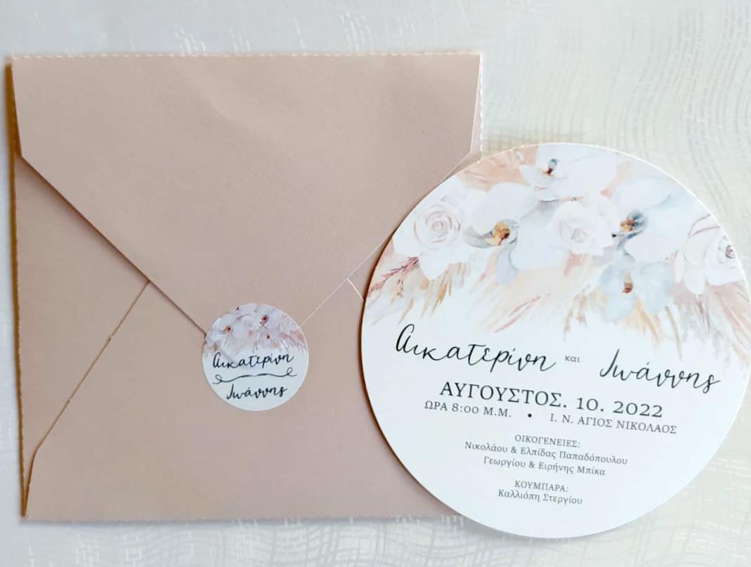 Ένα προσκλητήριο που αποπνέει κομψότητα, απλότητα και φυσική ομορφιά, ιδανικό για γάμους σε εκκλησία, κτήμα ή παραθαλάσσιο χώρο.