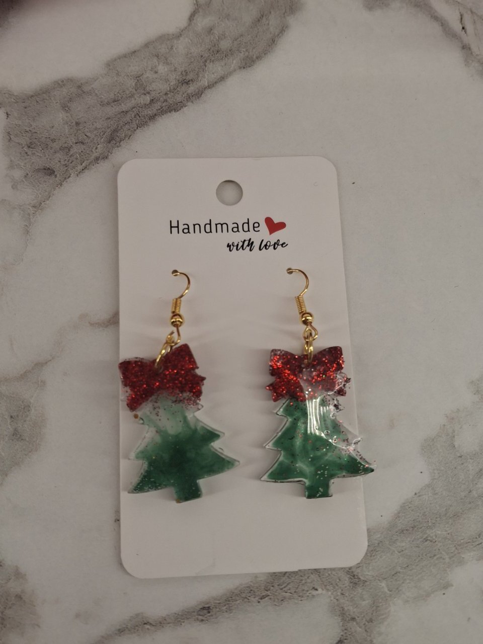 Πανέμορφα χειροποίητα σκουλαρίκια σε σχήμα χριστουγεννιάτικου δέντρου, ιδανικά για γιορτινές εμφανίσεις!