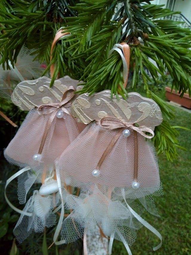 Ξύλινη χειροποίητη μπομπονιέρα φορεματάκι