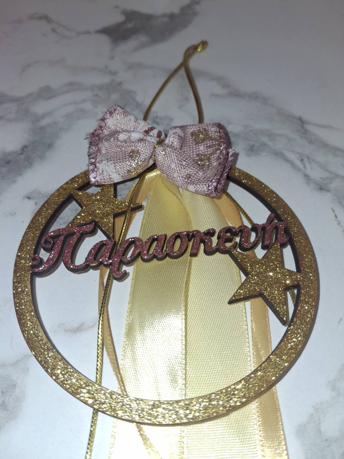 Εντυπωσιακό χειροποίητο χριστουγεννιάτικο γούρι με προσωποποιημένο όνομα, ιδανικό για ένα ξεχωριστό και συμβολικό δώρο.