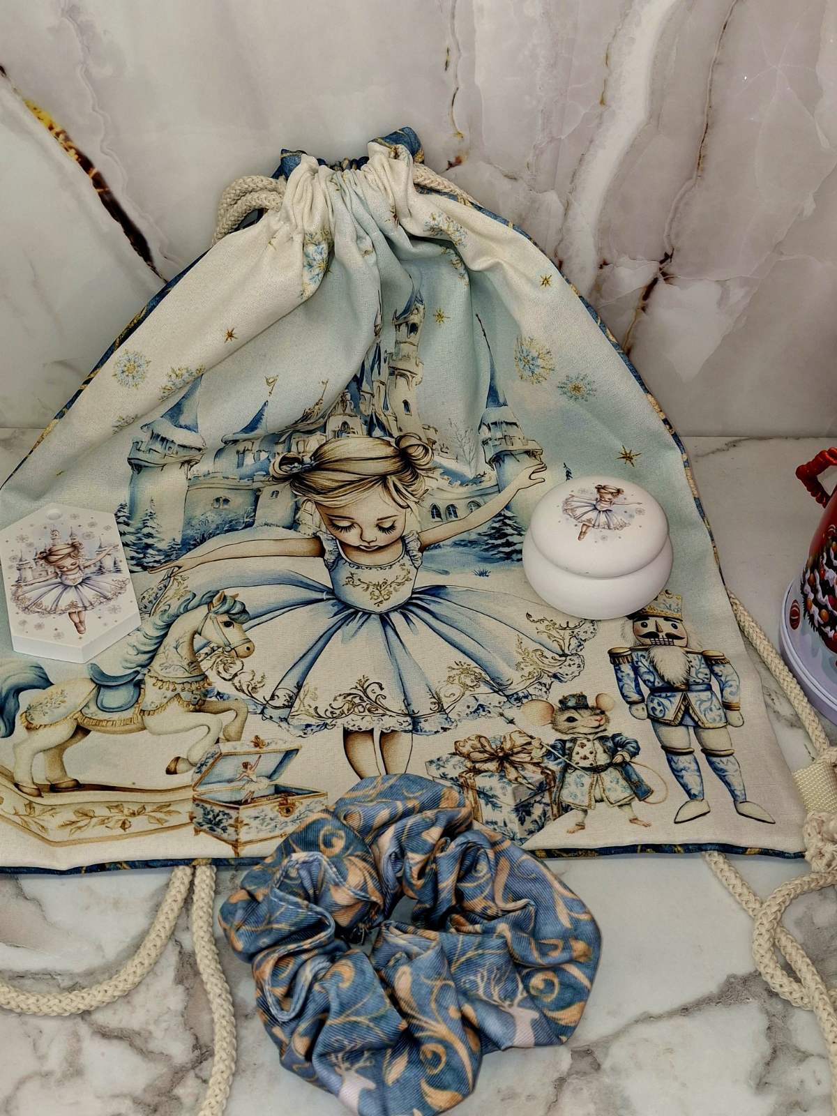 Ένα ονειρεμένο, παραμυθένιο πουγκί με θέμα τη μικρή μπαλαρίνα, εμπνευσμένο από τον Καρυοθραύστη και τη μαγεία του χειμώνα.